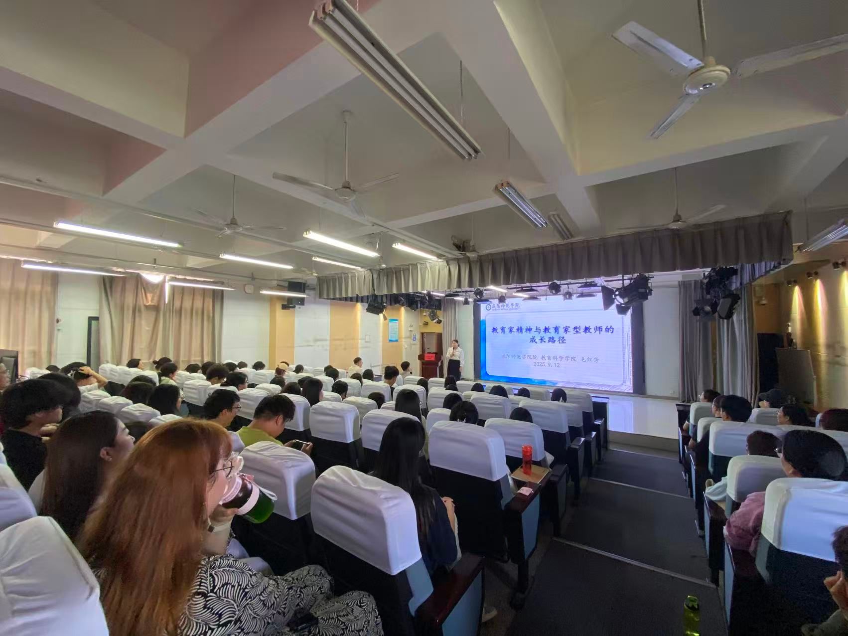 9月12日下午,按照《陕西省教育厅办公室关于做好庆祝 2025 年教师节有关工作的通知》(陕教师办〔2025〕27 号)要求和我校教师节庆祝活动部署安排,我校在弘道楼5楼报告厅举办教育家精神专题报告会,报告会由党委教师工作部副部长、人事处副处长潘丽鹏主持。